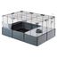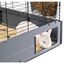 La jaula para cobayas y conejos Multipla de Ferplast está diseñada para ofrecer confort y seguridad a tu pequeño amiguito. La casa para conejos garantiza una superficie habitable de 0,77 metros cuadrados, lo que asegura una excelente calidad de vida para tus pequeños amigos. Se incluyen todos los accesorios necesarios para su comodidad inmediata: un comedero para el heno, un comedero, un bebedero, una casita de descanso, una escalera para subir al tejado. El panel delantero posee una puerta deslizante para permitir que el conejo salga. La puerta cuenta con una cerradura de seguridad para evitar fugas repentinas. La red superior de la jaula se puede quitar por completo para permitir el mantenimiento. El lateral se puede levantar y sacar para realizar inspecciones rápidas. La gran base está diseñada para recoger la suciedad y los residuos, con el fin de evitar que ensucien el suelo. La caseta para roedores se entrega en un kit de montaje. Es fácil de montar: Tan solo junta los paneles y las piezas de plástico usando los sistemas de unión, los conectores y las abrazaderas adecuadas, sin necesidad de herramientas de instalación específicas. Esta jaula para cobayas y conejos también es ecológica y sostenible.