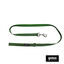 Correa para perros de nylon verde oliva reflectante con argolla para portabolsas y asa acolchada de neopreno.