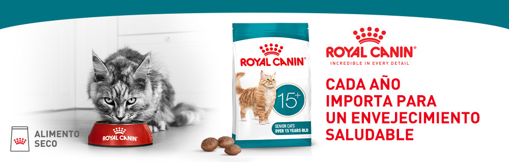 A medida que los gatos envejecen y pierden el apetito, necesitan una alimentación rica en energía para mantener su peso. ROYAL CANIN® AGEING 15+es un alimento seco fácil de comer que ofrece nutrientes esenciales para un envejecimiento saludable.