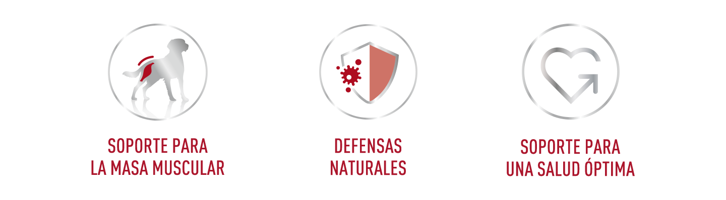Esta fórmula está minuciosamente elaborada para ayudar a mantener la masa muscular gracias a su contenido en proteínas de alta calidad, por lo que se mantendrá muy fuerte para realizar todas sus actividades. Está enriquecida con prebióticos y una combinación de vitaminas, incluidas las vitaminas C y E para ayudar a mantener las defensas naturales de tu perro en óptimas condiciones.