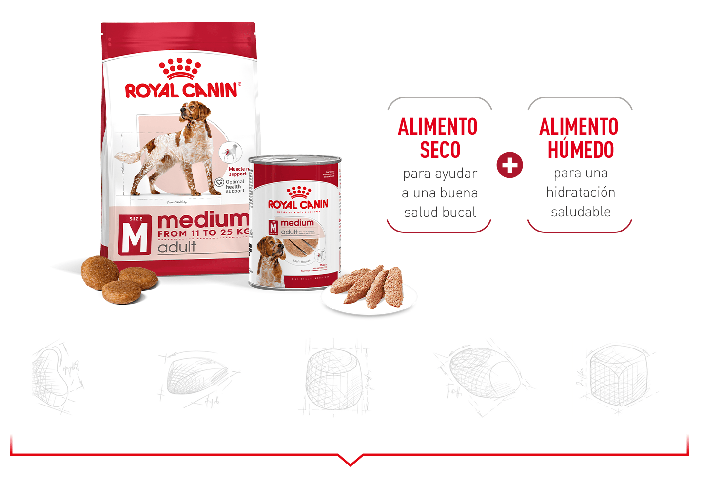 ¡Tu peludo amigo se mantendrá totalmente fuerte para realizar todas sus actividades si le alimentas con el delicioso paté Medium Adult de Royal Canin!