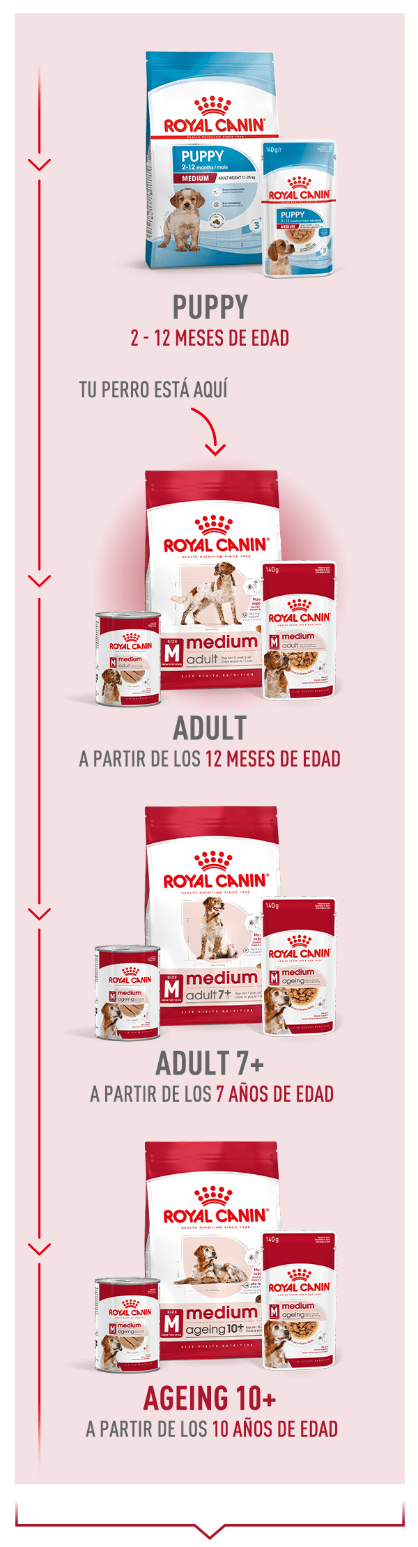 Por eso, la fórmula MEDIUM de la gama Size Health Nutrition de ROYAL CANIN® está cuidadosamente adaptada a sus necesidades específicas.