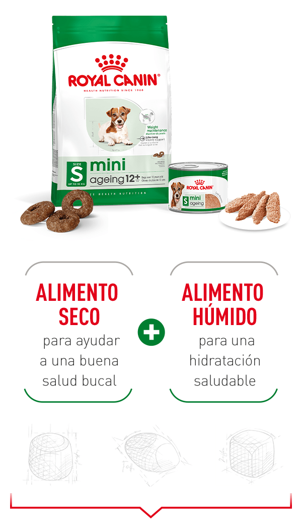 Royal Canin Mini Ageing 8+ es un alimento húmedo completo para perros de razas pequeñas (hasta 10 kg) de más de 8 años, formulado para satisfacer sus necesidades nutricionales en la fase senior.