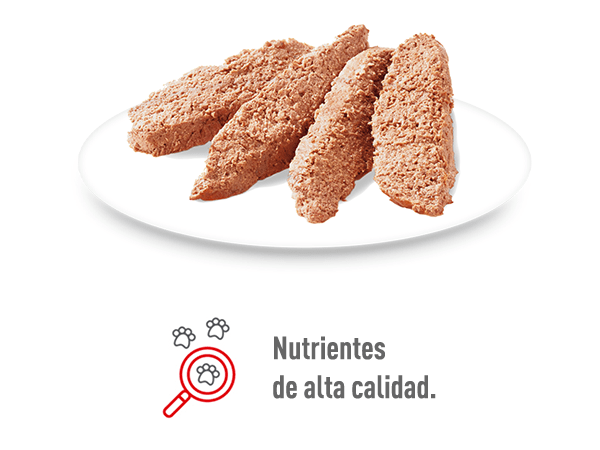 Comida húmeda en paté para perros adultos de razas pequeñas hasta 10 kg. Ofrece una dieta completa y equilibrada, ayuda a mantener los huesos fuertes, favorece la salud de la piel y pelaje, y ayuda a mantener un peso ideal.