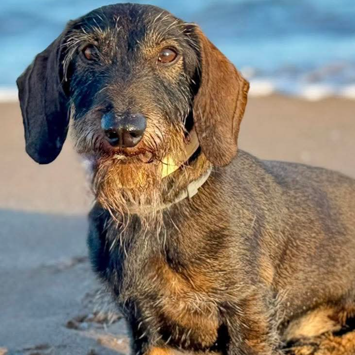 Este simpático perrito, teckel de pelo duro kaninchen, se llama Chester y tiene siete años. Es un buenazo que necesita paciencia al principio porque muestra algo de inseguridad al provenir de un criadero, pero muestra un carácter excelente. Y… le encantan dos cosas: estar encima de ti y perseguirte a todas partes. Además, cuenta con un tamaño pequeño ya que solo pesa 4 kg. También se lleva estupendamente con otros perretes. Finalmente, destacamos que lo estamos tratando de leishmania controlada, por lo que debemos darle una pastilla diaria de alopurinol.