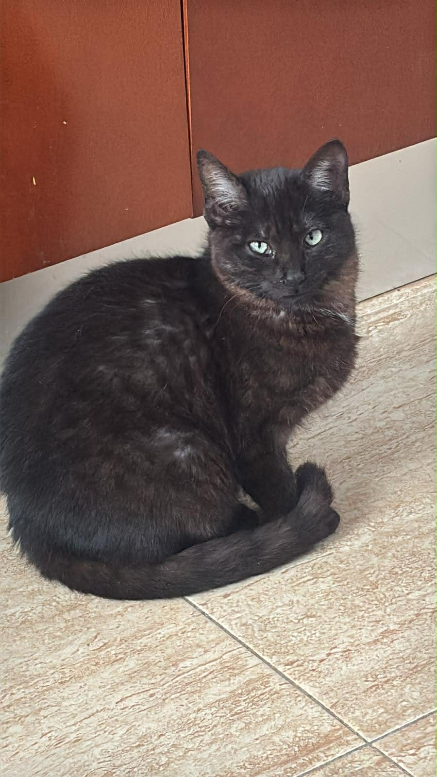 Una pegajosa en cuanto te ve , le encanta estar acompañada y ser mimada, es una belleza de pantera con su cuello ahumado