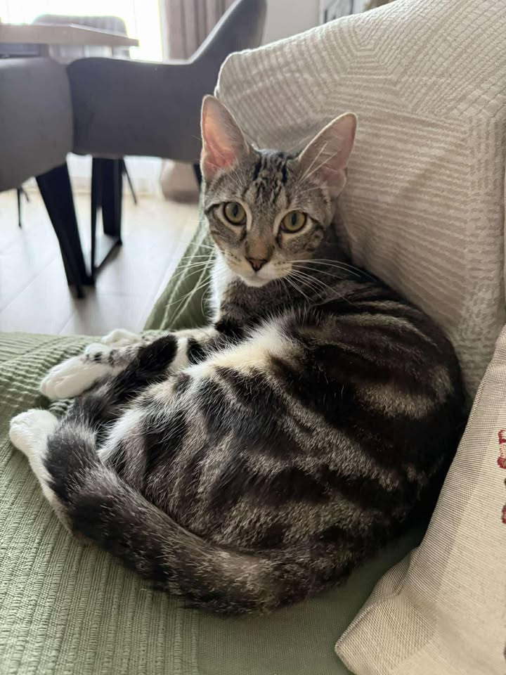 Marco es un gato muy bueno y cariñoso. Está de acogida y su familia está encantada con él. Se lleva bien con perros y gatos, ideal para vivir con cualquier familia