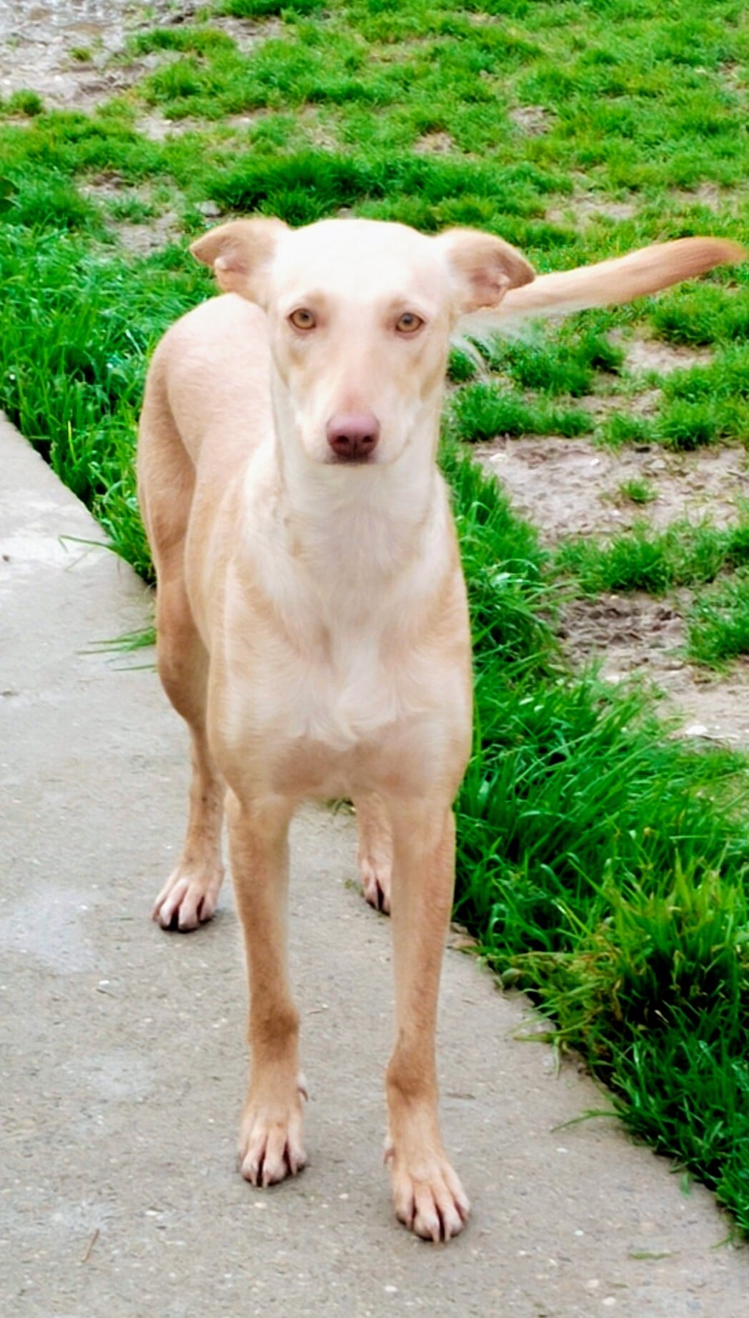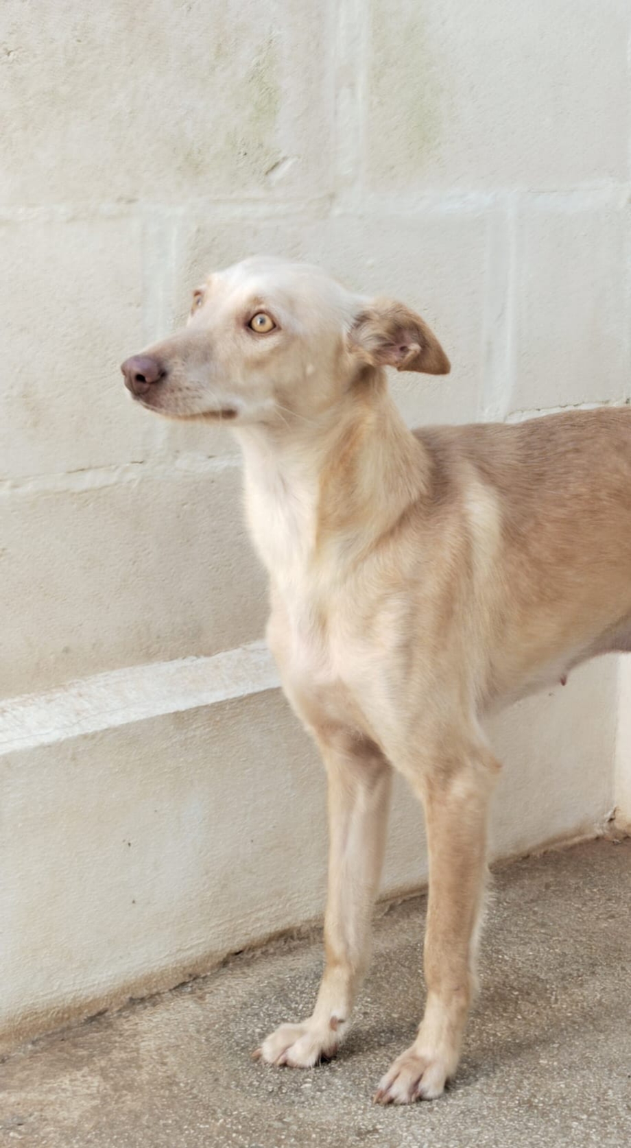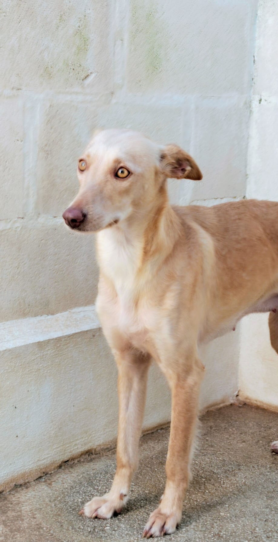 *KANA* Sexo: hembra Raza: podenco Fecha de Nacimiento: 01.02.2025 Peso: 11 kg Carácter: tímida y algo asustada todavía, pero es muy buena y sociable.