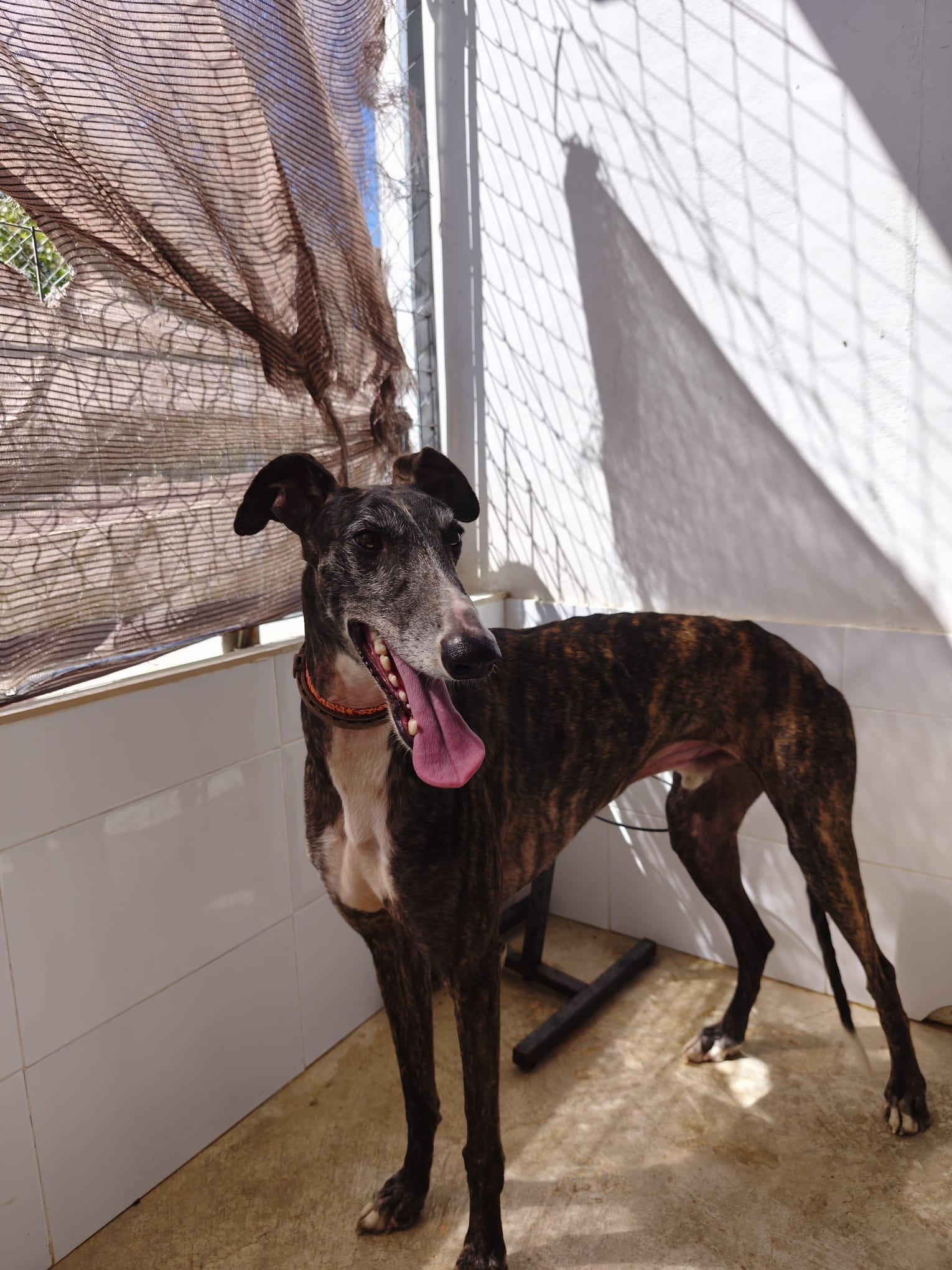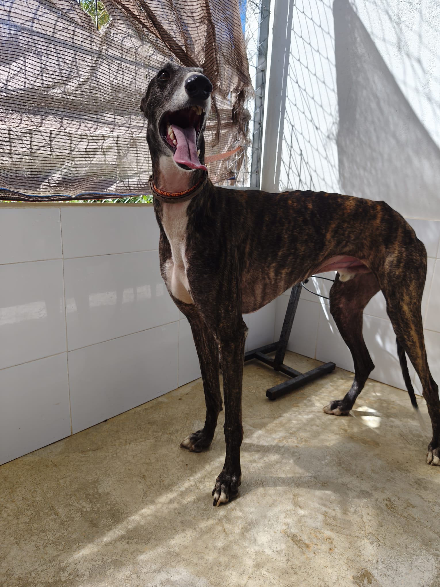 *BRIBÓN* Sexo: macho Raza: Galgo Español Fecha de Nacimiento: 5.12.2023 Peso: 27,5 kg Carácter: Muy bueno y sociable. Acaba de llegar y ya disfruta del contacto con los voluntarios.