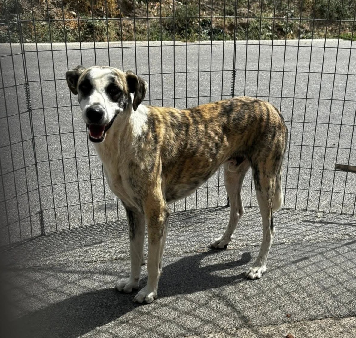 Raza: cruce galgo y mastín Peso:20-25 kg Edad: aprox 2 años Carácter:Rex es un perro muy buenachón, noble y cariñoso, perfecto para compartir vida, paseos y muchos mimos 🐶.