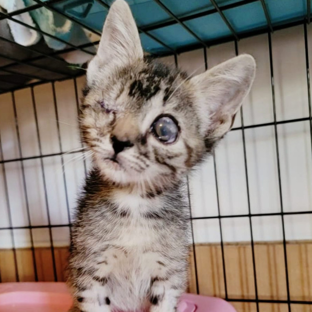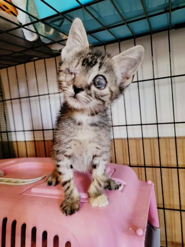 Arwen es una gatita muy especial que nos ha demostrado que la verdadera fuerza viene en envases pequeños. Hace poco tuvo que ser operada para extraerle un ojito, y en el otro aún necesita una cirugía para quitar unas adherencias que le impiden ver bien. Con esa operación tendrá la oportunidad de ver el mundo al menos con un ojito. Fue rescatada gracias al aviso de una señora que no sabía cómo ayudarla, y desde entonces nos ha demostrado que es una *luchadora nata*. Cuando llegó estaba muy malita y sin ganas de jugar, pero hoy es una gatita *mimosa, juguetona y llena de vida*. Arwen ya está testada y es *negativa en inmunodeficiencia y leucemia felina*, lo cual es una gran noticia. Ahora se encuentra en una casa de acogida recuperándose, creciendo y esperando ese futuro donde pueda conocer lo que es una familia de verdad que la ame tal y como es. Arwen necesita padrinos y madrinas que la ayuden en su proceso de recuperación y en la cirugía que le dará la oportunidad de ver mejor. YA esta lista, necesitará un hogar definitivo donde la cuiden y le den todo el amor que merece. Porque ser diferente no la hace menos especial, la hace ÚNICA.