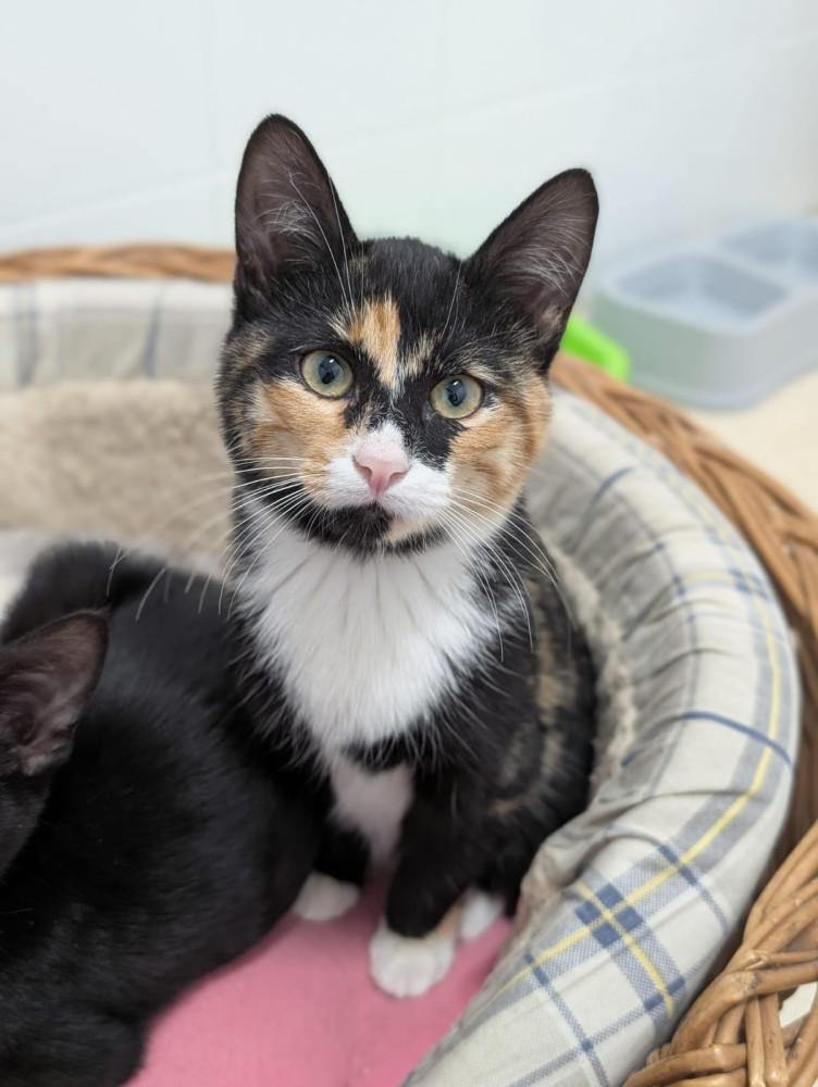 Meimei es una pequeñita que fue rescatada junto a sus dos hermanos, que fueron abandonados en la calle. Nacieron en un hogar, de eso estamos seguras, porque son sociables y estaban muy limpitos. Tras pasar un par de días escondidos debajo de un coche, los recogimos. Meimei está cada día más linda, con ese pelaje tricolor tan precioso. Al principio se mostró miedosa, pero poco a poco empezó a confiar en nosotras. Estar junto a sus hermanos la ayuda mucho a ver que somos buenas, y no las volveremos a abandonar. Como todos los bebes, Meimei es juguetona, mimosa y ronronea cuando la acaricias (¡a veces incluso antes!).