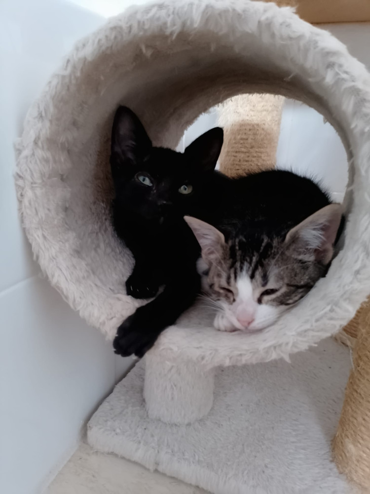 junto a su hermanito Jazz es un auténtico torbellino lleno de energía. Nuestra compi los define como “unos bichos” porque no paran quietos: todo lo exploran, todo lo juegan, y siempre buscan compañía para compartir sus locuras. Son dulces, cariñosos, divertidos y les encanta acurrucarse después de una buena sesión de juegos. FUYU es una panterita preciosa, con un pelo negro azabache que, en cuanto crezca y tenga más cuerpecito, ¡va a ser suuuper hermoso! Se entrega testado de leucemia, inmunodeficiencia y filaria, siendo negativo para los tres. Con sus vacunas al día, chip, y desparasitaciones internas y externas. ¡Listo para un nuevo hogar y una vida de amor y felicidad!