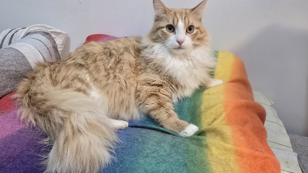 Jovencito atigrado naranjita con ojazos. Convive con jueves en la casa de acogida es muy mimoso y es + a leucemia