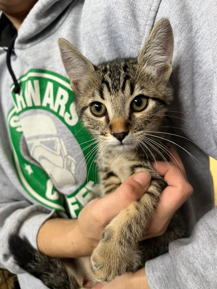 Zoro fue rescatado junto a sus 4 hermanitos del cementerio del pueblo, donde una persona decidio abandonarlos. Estaban asustados debajo de un coche, pero en cuanto les pusimos un poquito de comida, salieron a por ella! Pobres, habrían pasado hambre y sed, y estaban desorientados. Zoro, como buen bebe que es, es aventurero, lleva en su mirada la promesa de una vida llena de amor y juegos..Super sociable con otros gatos ya que desde pequeño ha estado con sus hermanitos.