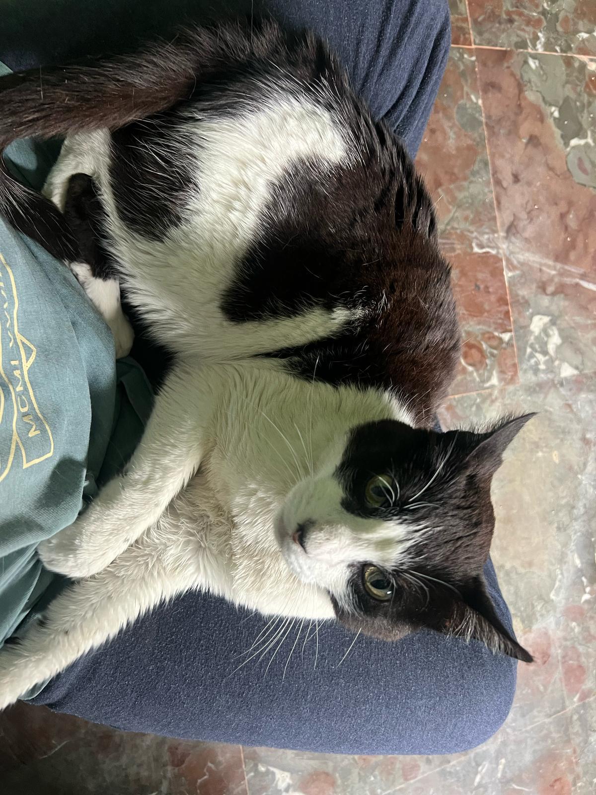 Milo es un gato super cariñoso y sumiso. Solo quiere acostarse en tu regazo y recibir caricias. Hace sus necesidades en el arenero desde el primer día, se deja cepillar y bañar con champú en seco. En el veterinario tiene una actitud ejemplar, se deja manipular sin ningún tipo de problema incluso cuando algo no es de su agrado. Es un gato super tranquilo, no rompe nada y te recibe en la puerta feliz cada vez que llegas a casa Necesita adaptación progresiva, no sabemos su pasado pero es un gato que lo ha debido pasar realmente mal. En su casa de acogida se encuentra muy a gusto, pero esto no fue instantáneo, necesita tiempo para sentirse seguro