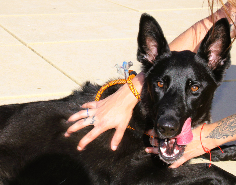 Bimba fue rescatada junto a su hermano de una muerte segura cuando fueron abandonados siendo sólo unos bebés, como si fueran basura. Ambos fueron afortunados y rápidamente encontraron buenas adopciones. Sin embargo, Bimba fue devuelta unos meses más tarde, debido a una enfermedad terminal de su adoptante. Volvió a ser adoptada y, de nuevo, la mala suerte se cebó con ella. La pareja que la adoptó se separó y volvió a ser abandonada. Ahora espera su tercera y última oportunidad. Es una perra diez. No puede ser más alegre y cariñosa. Es muy activa y le encanta jugar con otros perros y con personas. Cuando sale a pasear, causa sensación debido a su carácter tan juguetón y a ese pelaje negro y brillante que la caracterizan. Ella pesa 27 kg, llenos de amor y pasión por vivir. Como buena cruce de pastor belga es inteligentísima y aprende rápido. Creemos que su familia ideal tiene que ser alguien deportista que tenga ganas de disfrutar de una perra a la que también le encanta jugar y quemar energía. Si quieres verla en acción, puedes pinchar en este vídeo https://youtu.be/Rxksckhg76w