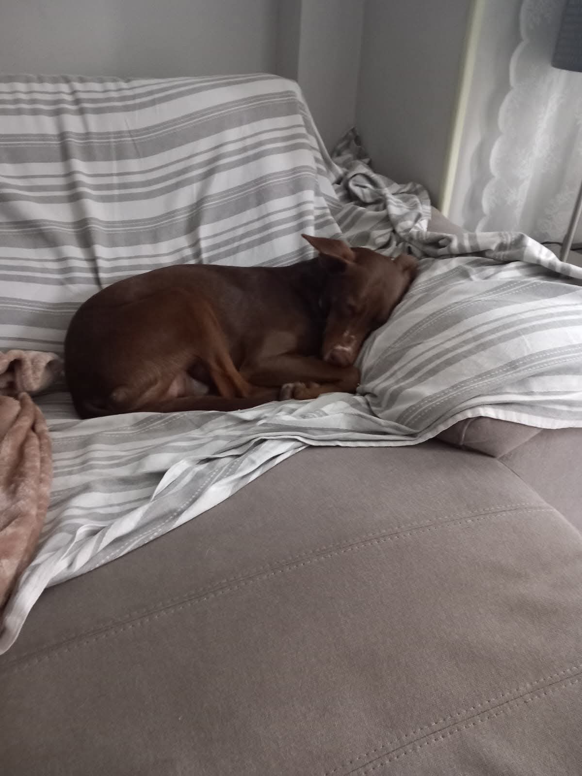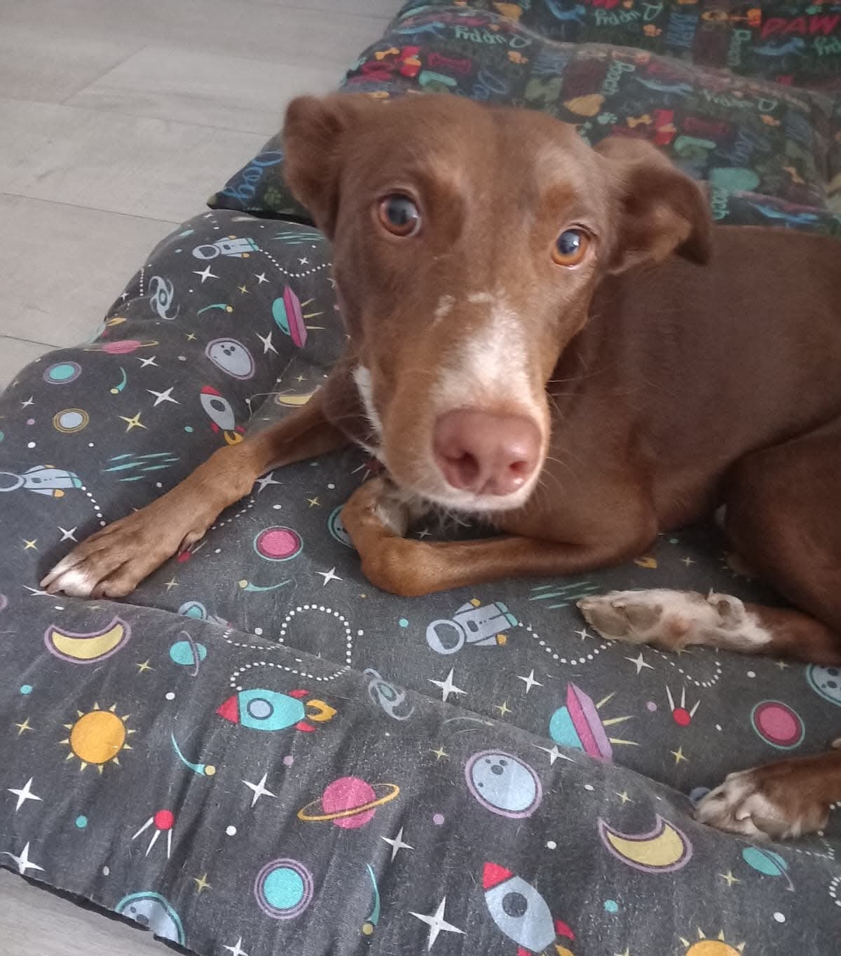 *COCO* CASO EXTERNO Sexo: macho Raza: Podenco Orito Fecha de Nacimiento: 11-11-2023 Peso: 15 kg. Carácter: juguetón, sociable, se lleva bien con gatos y perros, hace sus cosas fuera y en casa no rompe nada.