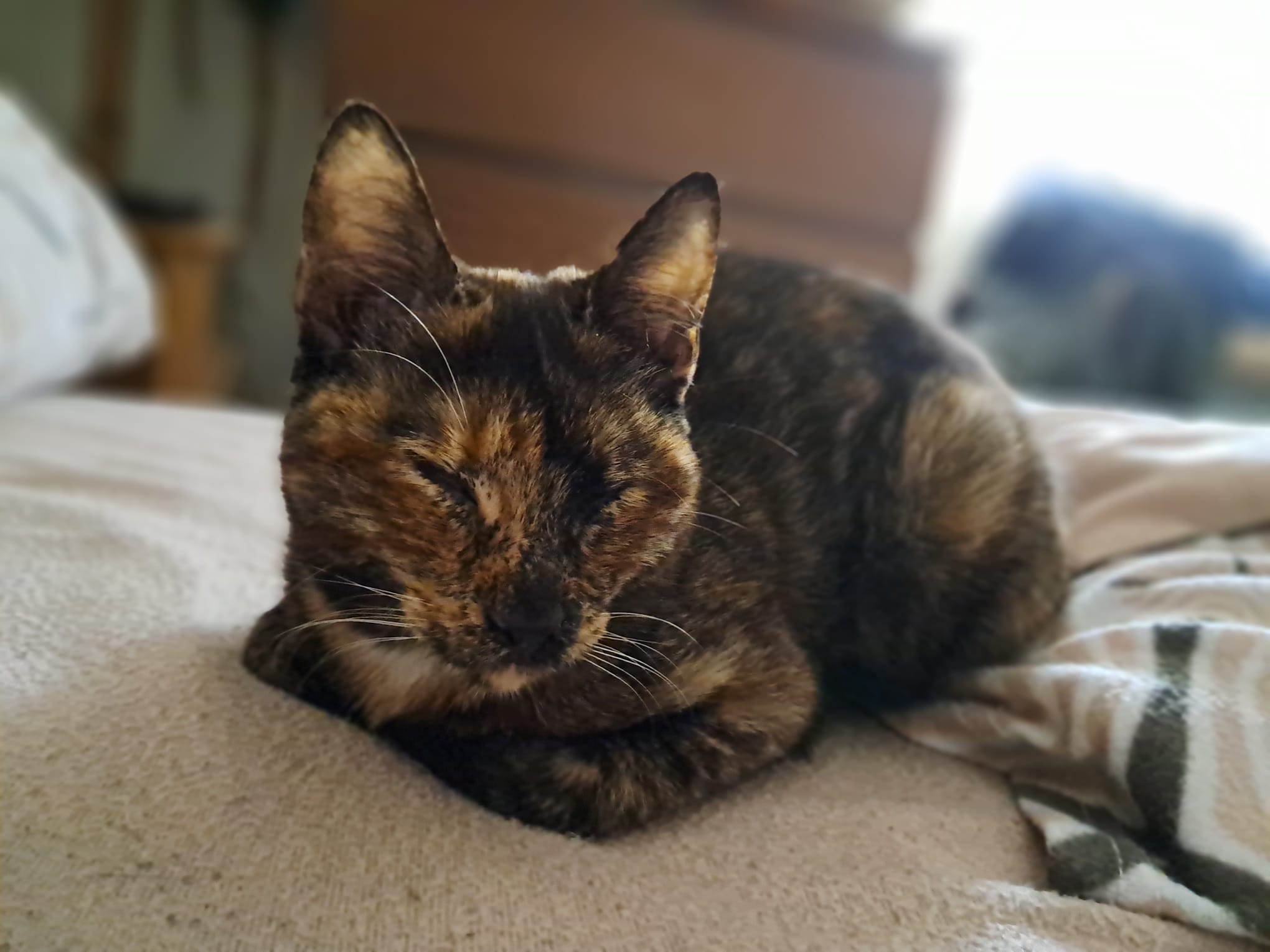 Gatito encontrado en la calle en malas condiciones, con pulgas, parásitos e infección ocular junto a sus hermanos. Urge encontrar un hogar para el y sus hermanos. Preferible en hogares con otros animales o en adopción conjunta con otro hermanit@.
