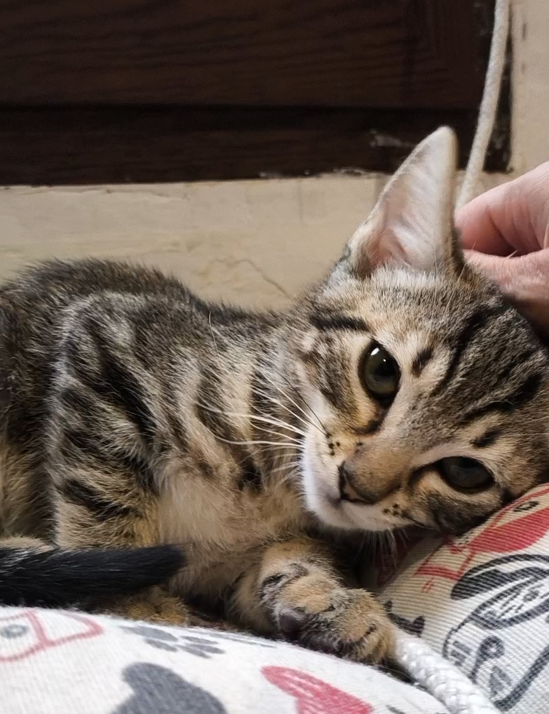 Goku es un gatito gris atigrado muy juguetón. Al principio puede mostrar desconfianza pero con un par de mimos se le pasa.