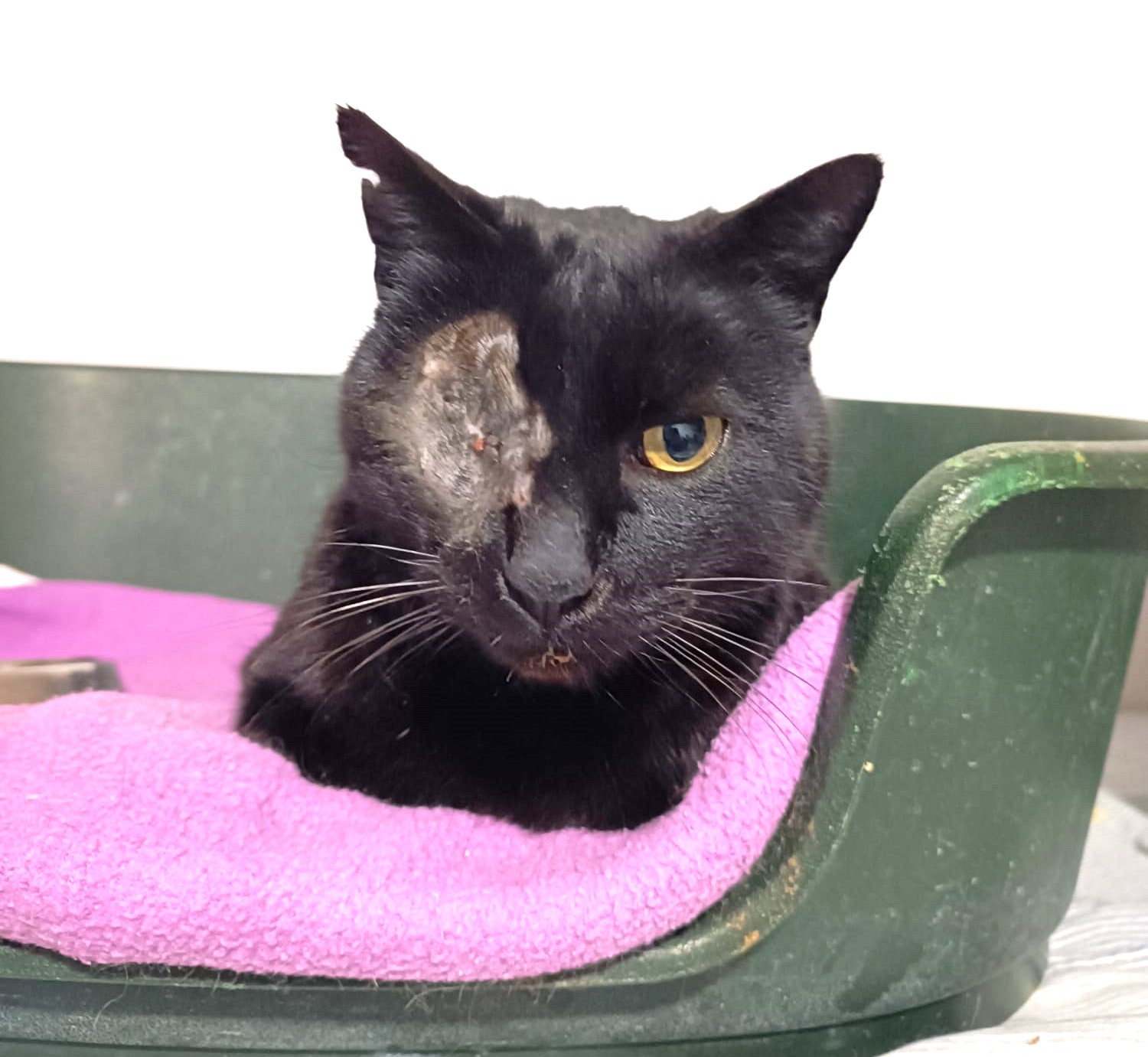 GSH VILLALBA. REGALIZ es esta panterita de aquí que rescatamos de la calle con un ojo en muy mal estado, debido a lo cual hubo que operarle. El tener un solo ojito no le impide hacer vida normal. AFICIONES: los churus, los mimos y las siestas en el sofá. Se entrega en la Comunidad de Madrid con su protocolo veterinario completo. IMPRESCINDIBLE TENER PROTECCIONES EN VENTANAS/TERRAZAS/BALCONES ¡SÍGUENOS EN REDES! Instagram y TikTok: @gshvillalba Facebook: Asociación Gatos sin Hogar Villalba gshvillalba@gmail.com ¡Hazte teamer por solo 1 € al mes! Asociación Gatos Sin Hogar Villalba GSH - Grupo Teaming https://www.teaming.net/asociaciongatossinhogarvillalbagsh?lang=es_ES ¡Visita nuestra tienda solidaria! GSHVillalba - Etsy España