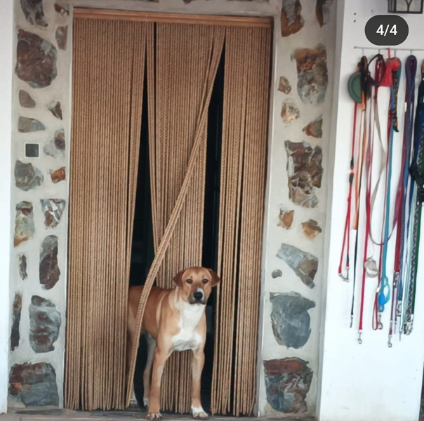 Fue encontrado atropellado con luxación de cabeza de fémur y rotula. Fue operado y se ha recuperado bien en una casa de acogida, iba con un podenco, Caramelo que también está con nosotros