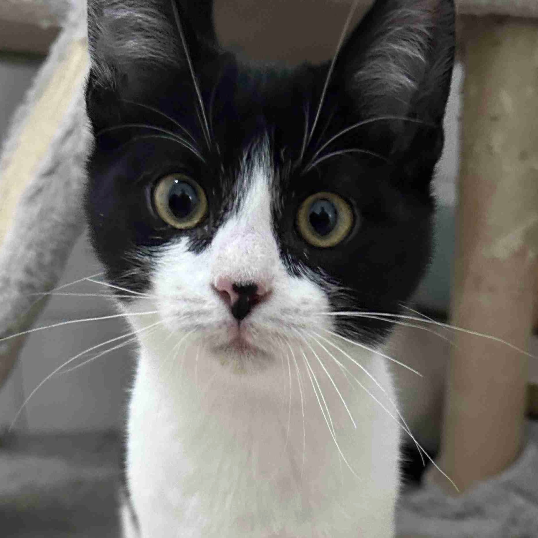 Gatito de apenas dos meses de edad , buscamos un hogar para él y sus hermanos. Es muy cariñoso y le encanta jugar 🤍🖤