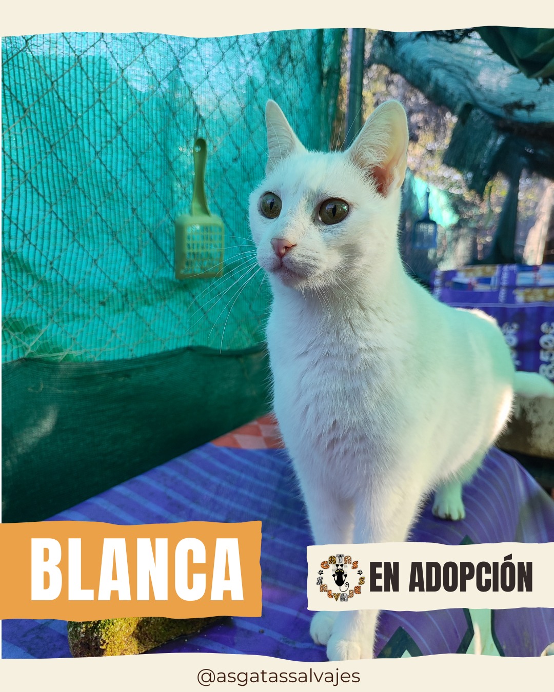 𝗕𝗟𝗔𝗡𝗖𝗔, 𝗲𝘀𝗽𝗲𝗿𝗮 𝘂𝗻𝗮 𝗳𝗮𝗺𝗶𝗹𝗶𝗮 𝗰𝗼𝗻 𝗹𝗮 𝗾𝘂𝗲 𝘀𝗲𝗿 𝗳𝗲𝗹𝗶𝘇 𝗽𝗮𝗿𝗮 𝘀𝗶𝗲𝗺𝗽𝗿𝗲😺 Nuestra Blanca, de tan sólo 4 añitos, es una gatita que vino a nuestro Refugio, tras estar viviendo en una casa donde llegó siendo cachorra. Sus humanos contactaron con nosotros ya que es una gata que 𝘀𝘂𝗳𝗿í𝗮 𝘁𝗮𝗹 𝗻𝗶𝘃𝗲𝗹 𝗱𝗲 𝗲𝘀𝘁𝗿é𝘀 que los atacaba😢, por lo que necesitaban que saliera de casa cuanto antes... Desde entonces, Blanca se comporta en un lugar tranquilo y sin ruido como la gata que es. Amorosa, cariñosa y juguetona. Es todo un amor😻. Sí que hemos notado, durante su periodo de adaptación, que en los ambientes con ruidos fuertes y voces altas, su nerviosismo hace que aumente pero en un ambiente tranquilo, 𝗲𝘀 𝘂𝗻𝗮 𝗴𝗮𝘁𝗶𝘁𝗮 𝗮𝗱𝗼𝗿𝗮𝗯𝗹𝗲💕. ¿Quieres ser la nueva familia zen que tanto necesita?😺