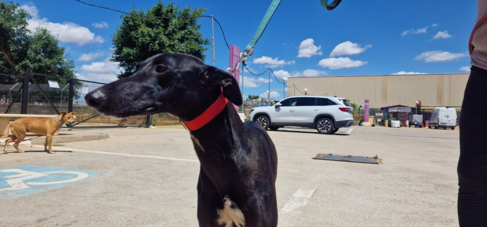 Mei estaba junto a otro galgo en el zoosanitario de Sevilla. Intentamos sacarlos a los dos, pero por desgracia Banjo, que así habíamos bautizado a su compañero, falleció antes de que pudiéramos sacarle. Mei estaba muy unida a sus cuidadores en la perrera, ya que es una perrita muy dulce y que busca el contacto con los humanos.
