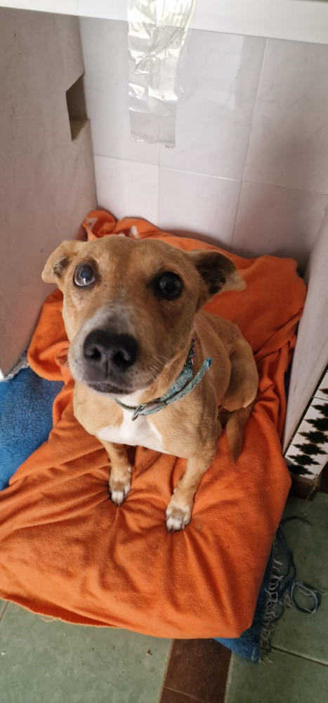 Senda es una perra dulce y muy amorosa con los humanos. Es sociable con perros, de hecho vive junto a Aldo con quien comparte sofá, los dos abuelitos del refugio. Por su ceguera no es recomendable estar en un sitio con mucho tránsito de distintos perros, por eso los tenemos en una zona aparte. Todos los perros del refugio merecen un hogar, pero los perros ancianos son los que peor lo pasan debido a su deterioro tanto cognitivo como físico, así que nos encantaría encontrar una acogida (o adopción, por supuesto) tan maravillosa como es ella.