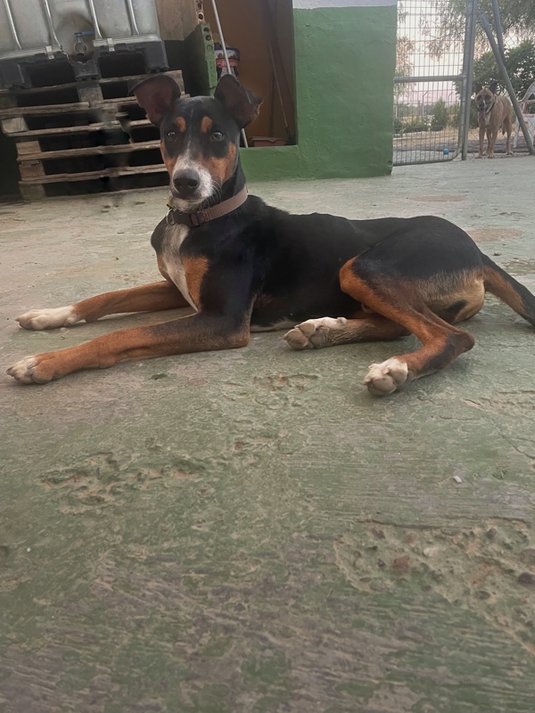 CUOTA DE ADOPCIÓN 200 € + TRANSPORTE No lo hemos probado con gatos. En el refugio se porta muy bien, no ha teniendo ninguna incidencia con ningún perro macho o hembra, le gusta buscar ratoncitos. Parece mestizo de bodeguero.