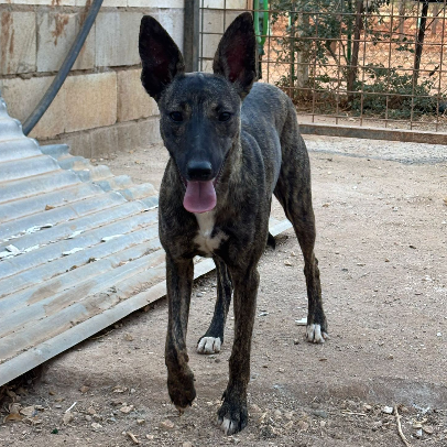 Indio fue recogido por el seprona, un desarmado lo tenía atado día y noche. Indio no guarda rencor es un perro súper juguetón y cariñoso y solo quiere jugar con sus compañeros, se lleva genial con machos y hembras. Indio es un cruce de galgo whippet, su tamaño es pequeño y pesa 13kilos.