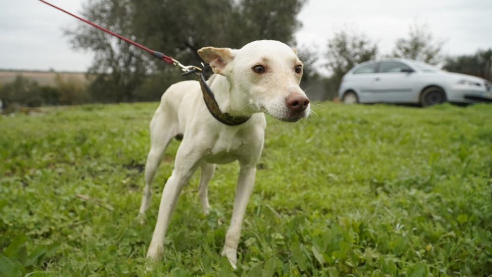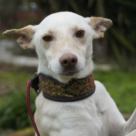 No tenemos muchos detalles, pero creemos que se escapó o fue abandonado por su cazador. Fue rescatado por una chica y nos hicimos cargo de él desde entonces. Oliver llegó super delgado, con heridas y con un poco de miedo.