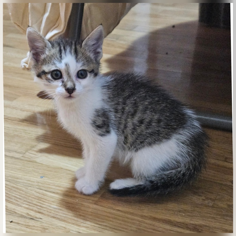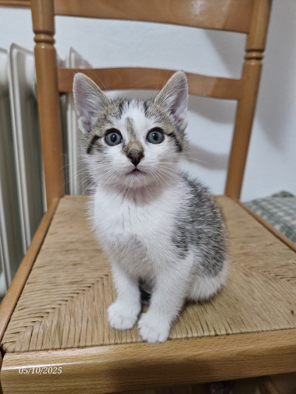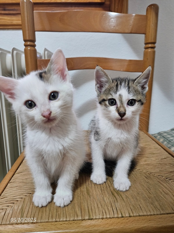 MINIE: gata de un mes y medio, hermana de Kala. Llevan una semana con nosotros y ya juegan, comen, van al arenero... son muy pequeñas, pero ya están preparadas para irse a su nuevo hogar.