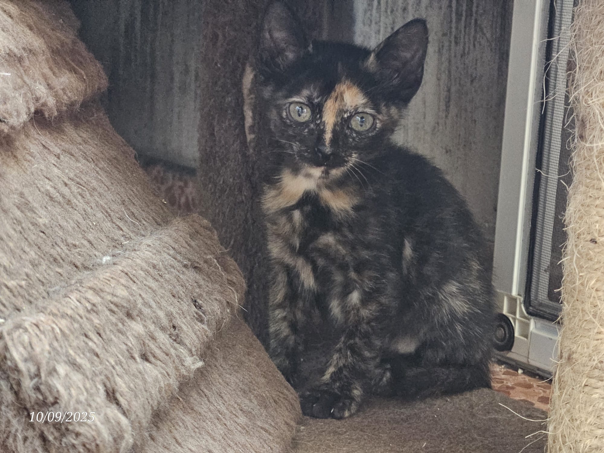 Gatita Carey, tiene menos de dos meses, es muy buena. Esta en Soria pero puede viajar, rescatada junto a sus dos hermanos.