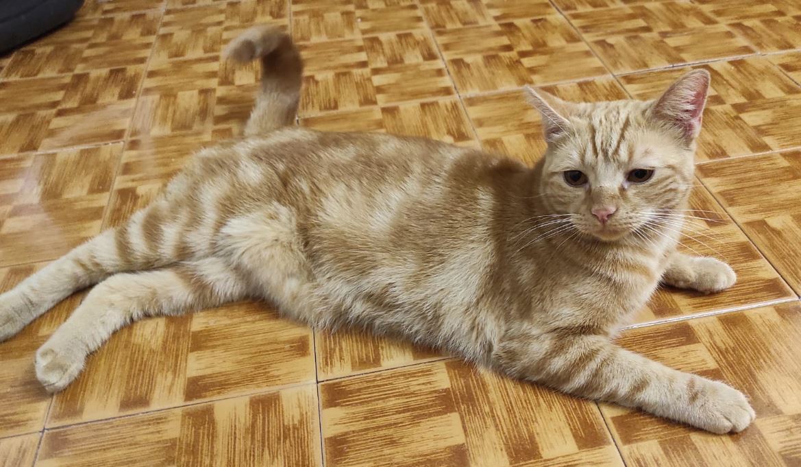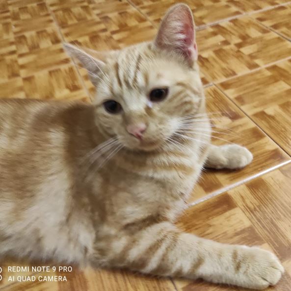 Tímido al principio pero cariñoso y noble. Necesita pienso especial por problemas de cristales en la orina