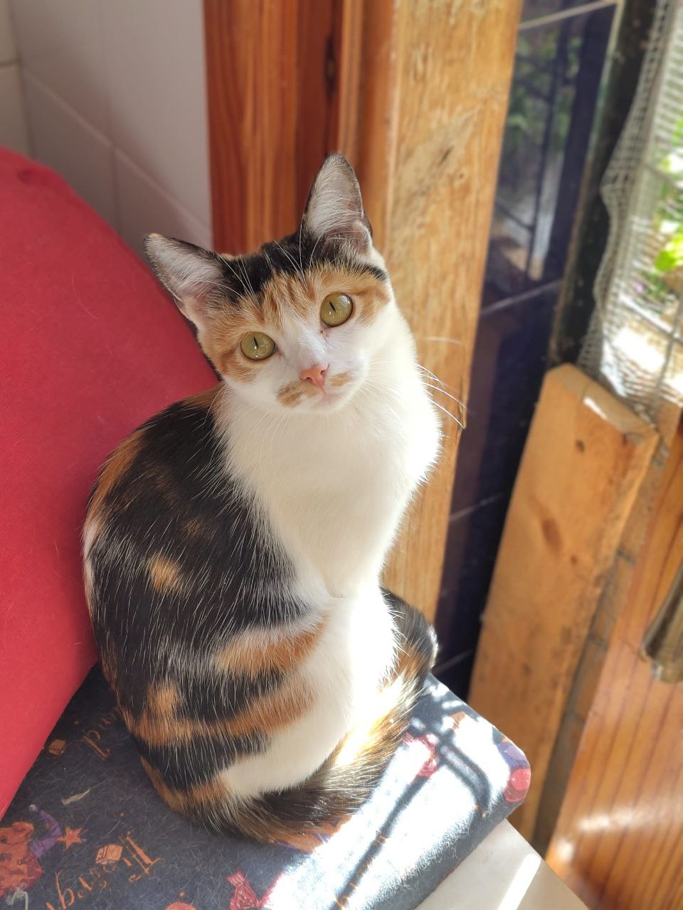 Ámbar se rescato junto a sus dos hermanitos de una colonia donde corrian peligro, es todo un amor de gata, al principio le cuesta coger confianza, no entendemos como nadie se ha fijado en ella aun.