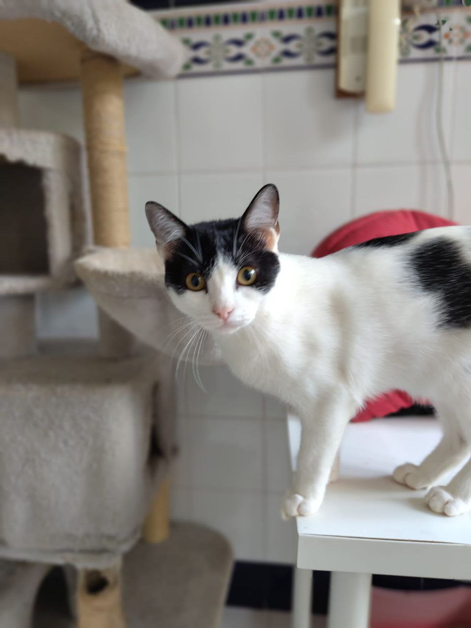 Dante es súper amigable y cariñoso, busca siempre jugar, le encanta que lo cojas y estar en brazos, es todo un amor de gato.