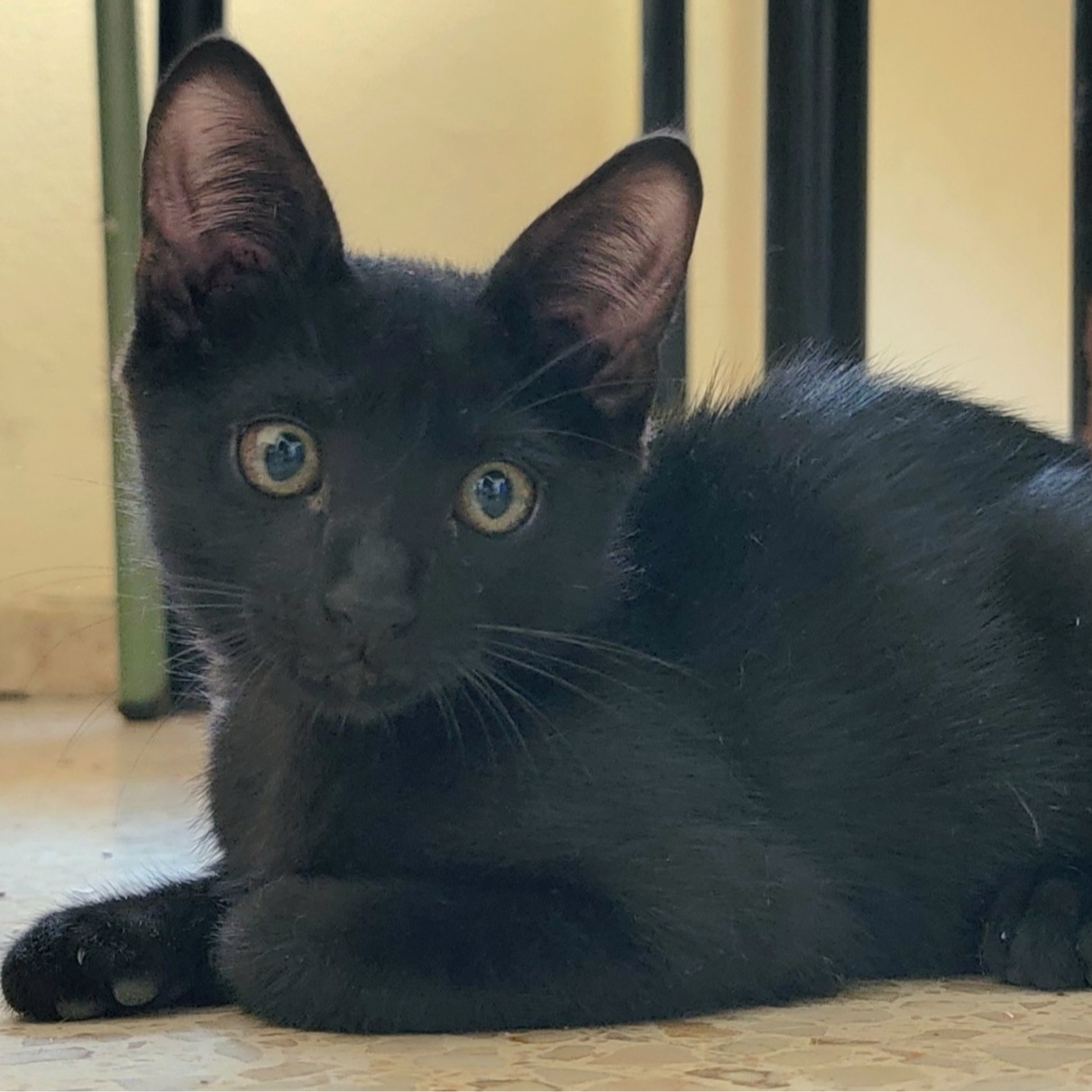 Gatito macho de 2 meses, muy cariñoso y sociable tanto con personas como con otros gatos. Tiene una condición llamada "Ataxia", la cual le dificulta mantener el equilibrio. No le impide llevar una vida normal, solo parece un borrachillo.