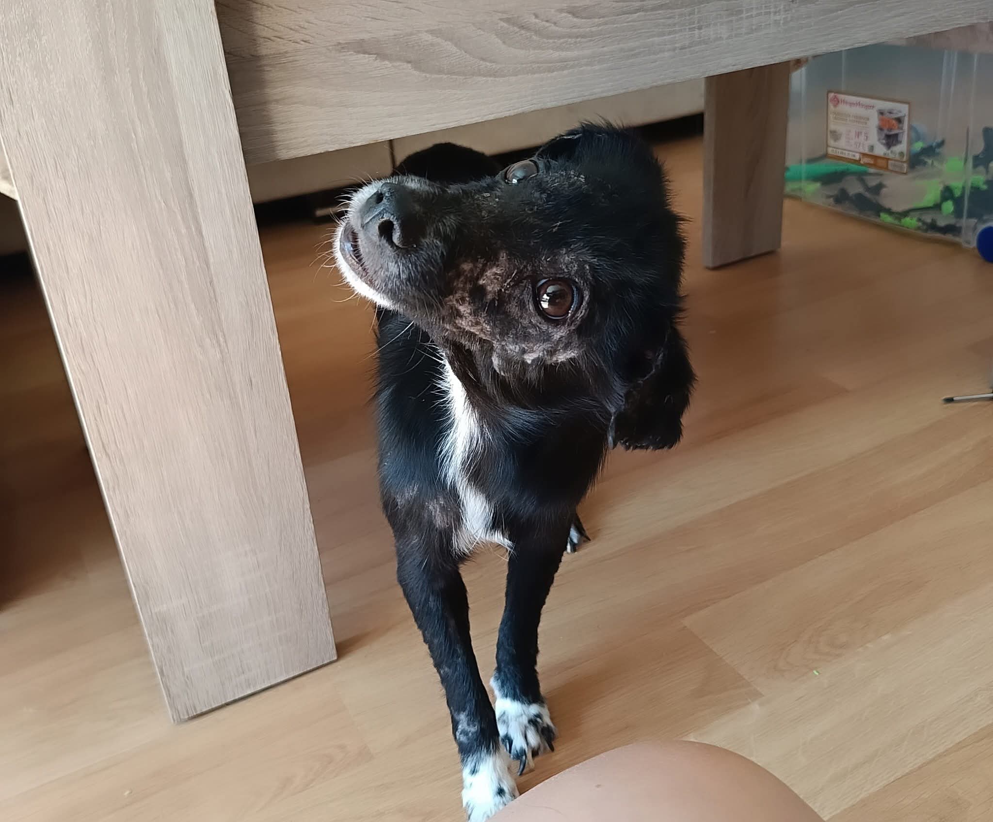 Bart es un perrín de un año aproximadamente (está hecho polvo para saber mejor su edad) y 5 kg que forma parte de la gran familia de Lisa, Maggie, Marge y Hommer. Llegó con la piel fatal y ya nos lo entregaron con un simpárica dado, pero tenía la piel inflamada, con falta de pelo y con costras. Las uñas largas y horribles y la cola pelada. Tras una semana y media nuestro campeón va mejorando, aunque el sábado nos tocó llevarle al veterinario corriendo porque había dejado de comer, pero tras más medicación parece que los dolores disminuyeron y se va encontrando mejor. En su caso necesita recuperarse un poco más para irse con su familia adoptiva, pero si alguien está dispuesto a esperarle, podemos ir valorando posibles familias. Se entrega con chip, pasaporte, desparasitado, vacunado y con compromiso de castración o castrado. Se encuentra en Valladolid. Contacto: alba@propatas.es