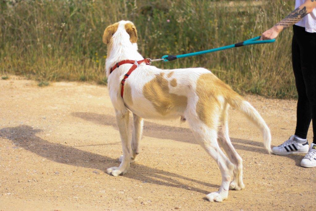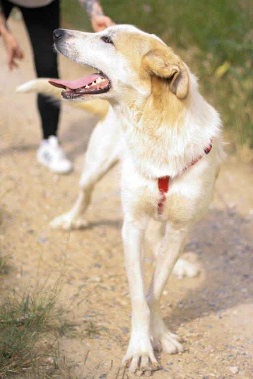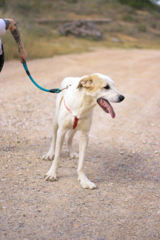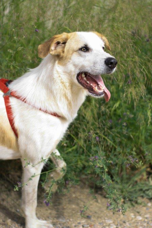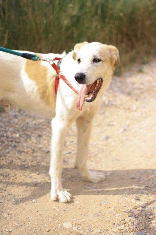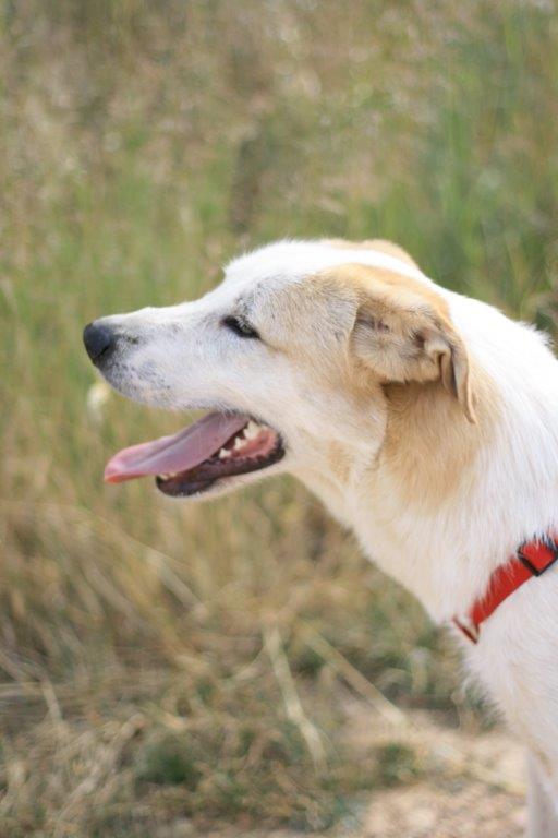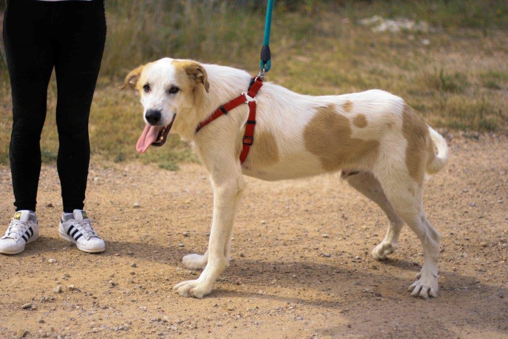 Se recogió en 2018, por las calles de Lituénigo (Zaragoza), después de estar varios días vagando por el pueblo. Tuvo problemas de hígado, que le hizo perder mucho peso, y estuvo débil un tiempo, pero con la medicación que le mandaron y el pienso especial, ha recuperado el peso y está fenomenal. Necesita tomar medicación, y un pienso adaptado a sus necesidades.