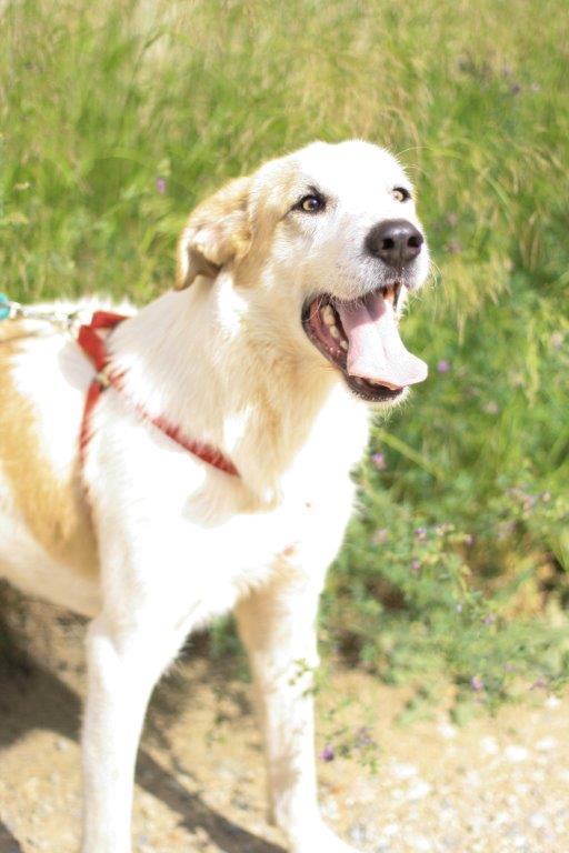 ATOS esta en adopción en Tarazona (Zaragoza). Es un mestizo de mastín. Este grandullón es bonachón y juguetón como un cachorro. Le encanta que le mimes y le des cariño desde que lo conoces. Es muy sociable con todo el mundo, y también sale al patio con sus compañeras hembras sin problemas, pero es territorial con machos. Vivir con una familia que tenga jardín sería lo ideal.