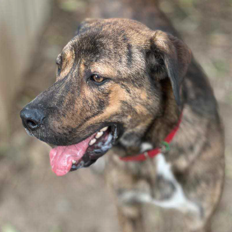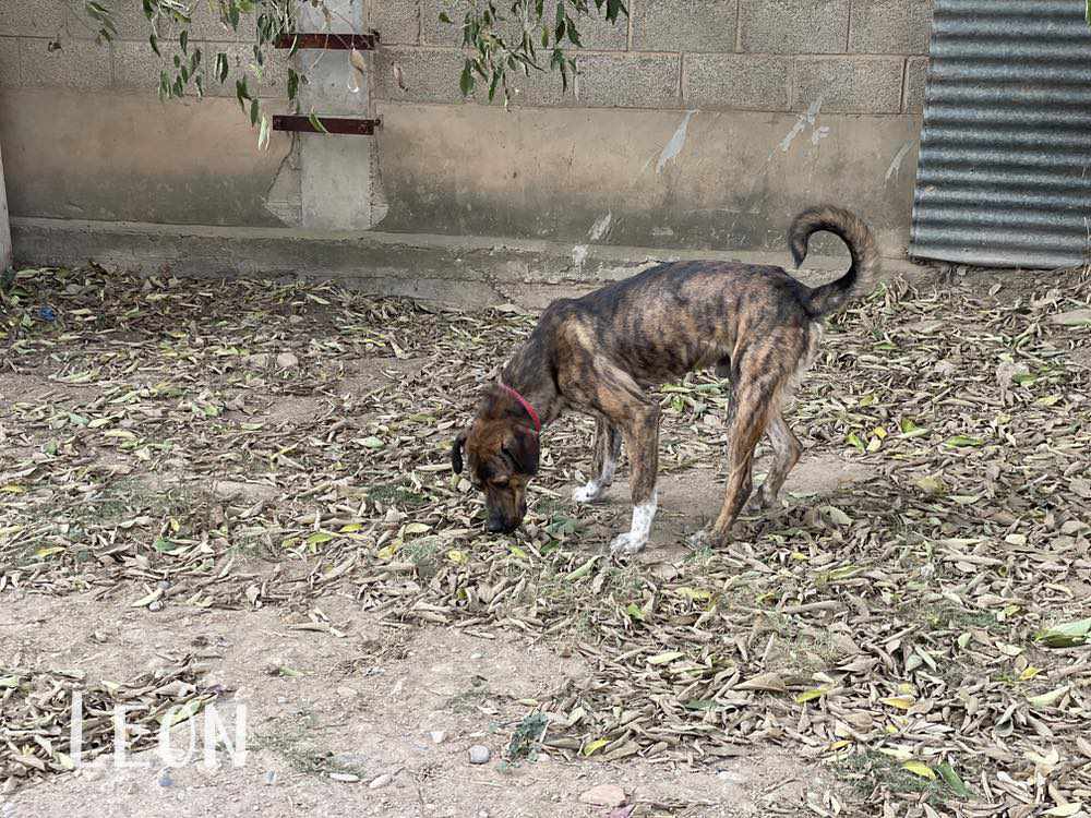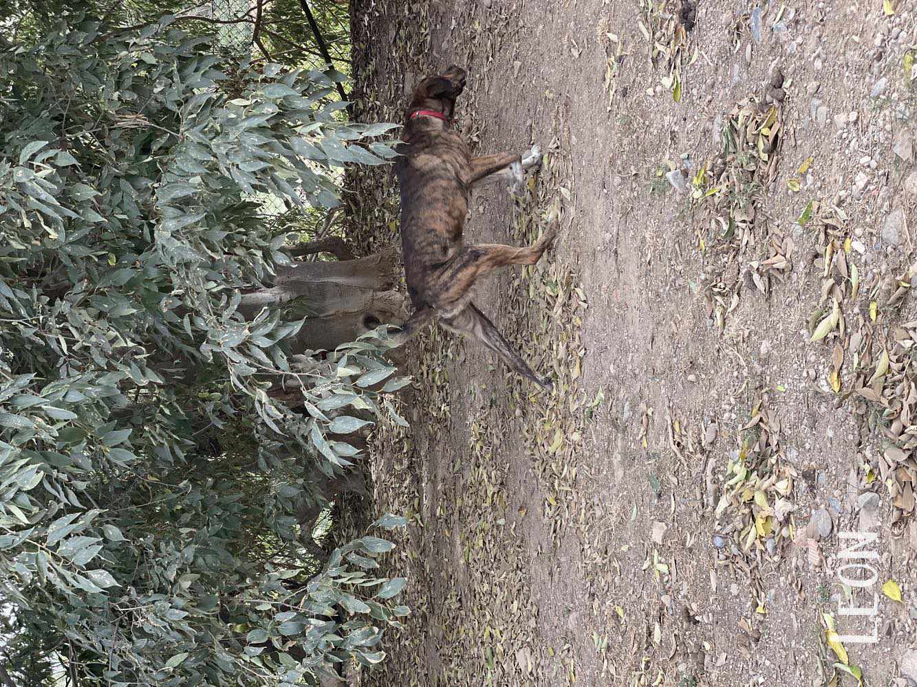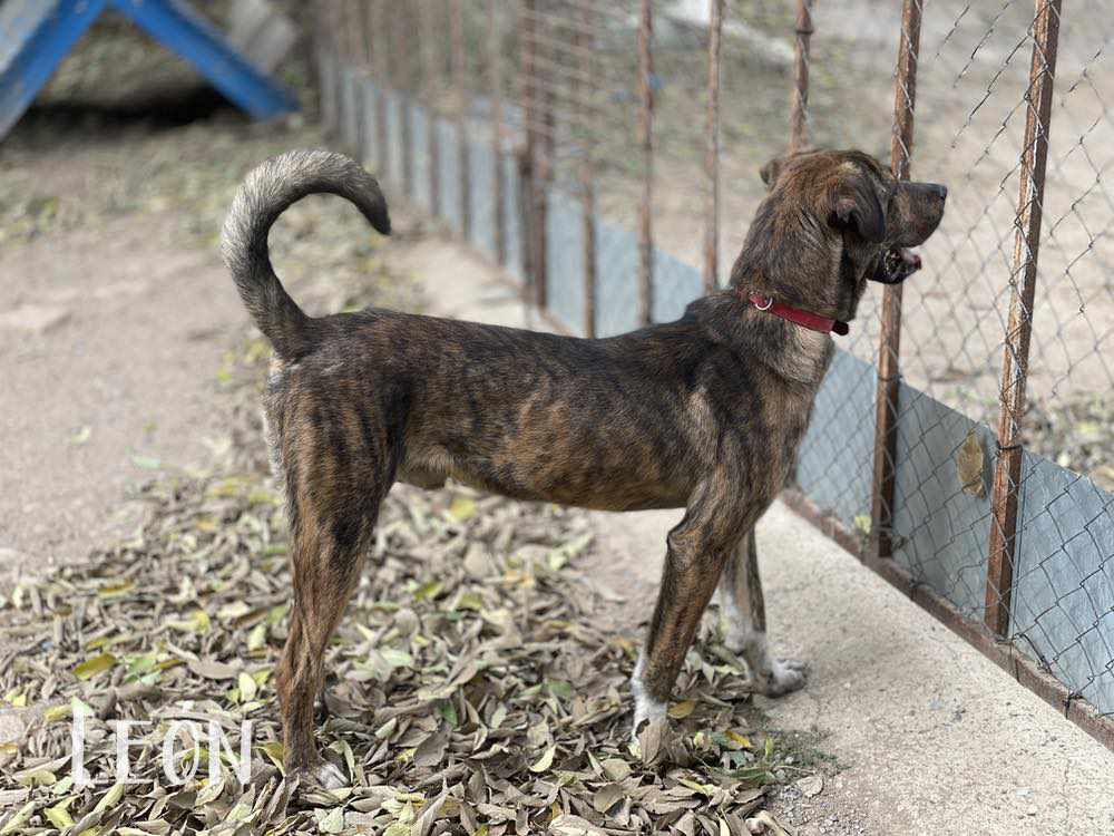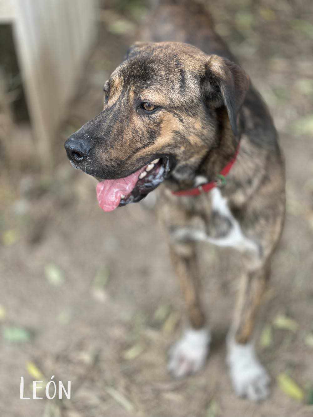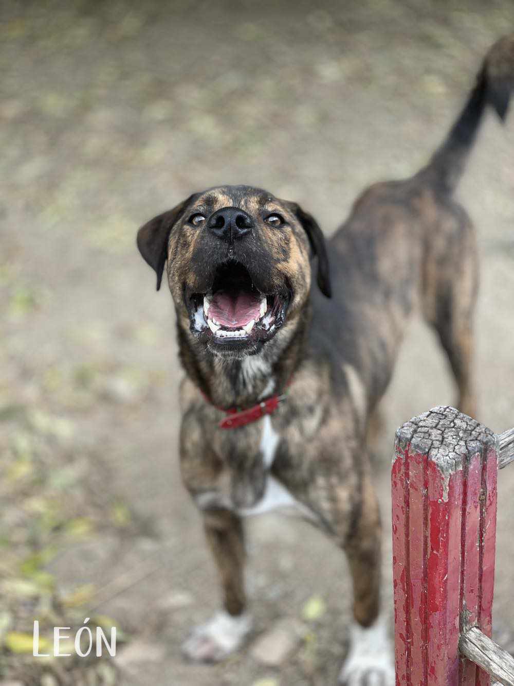 LEÓN, está en adopción en Tarazona (Zaragoza). Esta belleza de mestizo de mastín, es un espectáculo en su fuerza y vitalidad. Es muy sociable y mimoso con todo el mundo que ya conoce. Es muy juguetón y algo brutote. Con los desconocidos, si está en el patio, se muestra vigilante y muy protector del territorio, (como medio mastín que es). Con hembras sale al patio y se lleva bien con ellas. Con machos no tanto. Vivir con una familia que tenga jardín sería lo ideal.