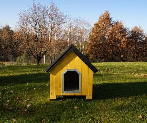 Se trata de una casa para perros sólida, resistente y muy fácil de montar; no en vano tiene unos 30 kg, cuando las casetas tradicionales pesan la mitad, lo que da una idea de su sólido asentamiento, para que no se desplace. Para decorarla se ha utilizado una pintura amarilla al agua no tóxica y segura que dispone del certificado de calidad EN17.